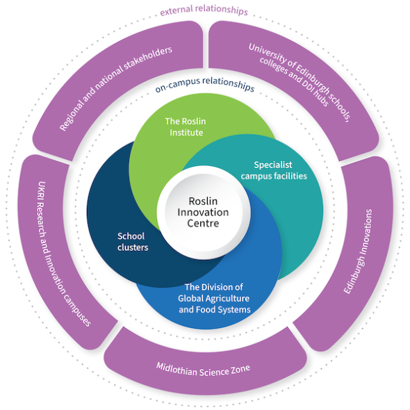 Roslin Innovation Centre supports research innovation and engagement activity across all five of the School clusters - the five research divisions of the School and eight divisions within the Roslin Institute.
